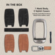 - DUAL COLOR OPTION: Comes with 2 stylish leather covers – one in black and one in brown – allowing you to customize your key's look to suit your mood, outfit, or car interior.ches.