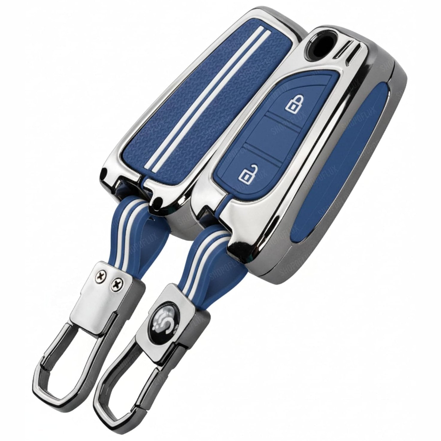 SHOPOFLUX Metal Key Cover Compatible with Toyota Innova Crysta | Corolla Altis 2 Button Flip Key (Metal Silicone Blue)
