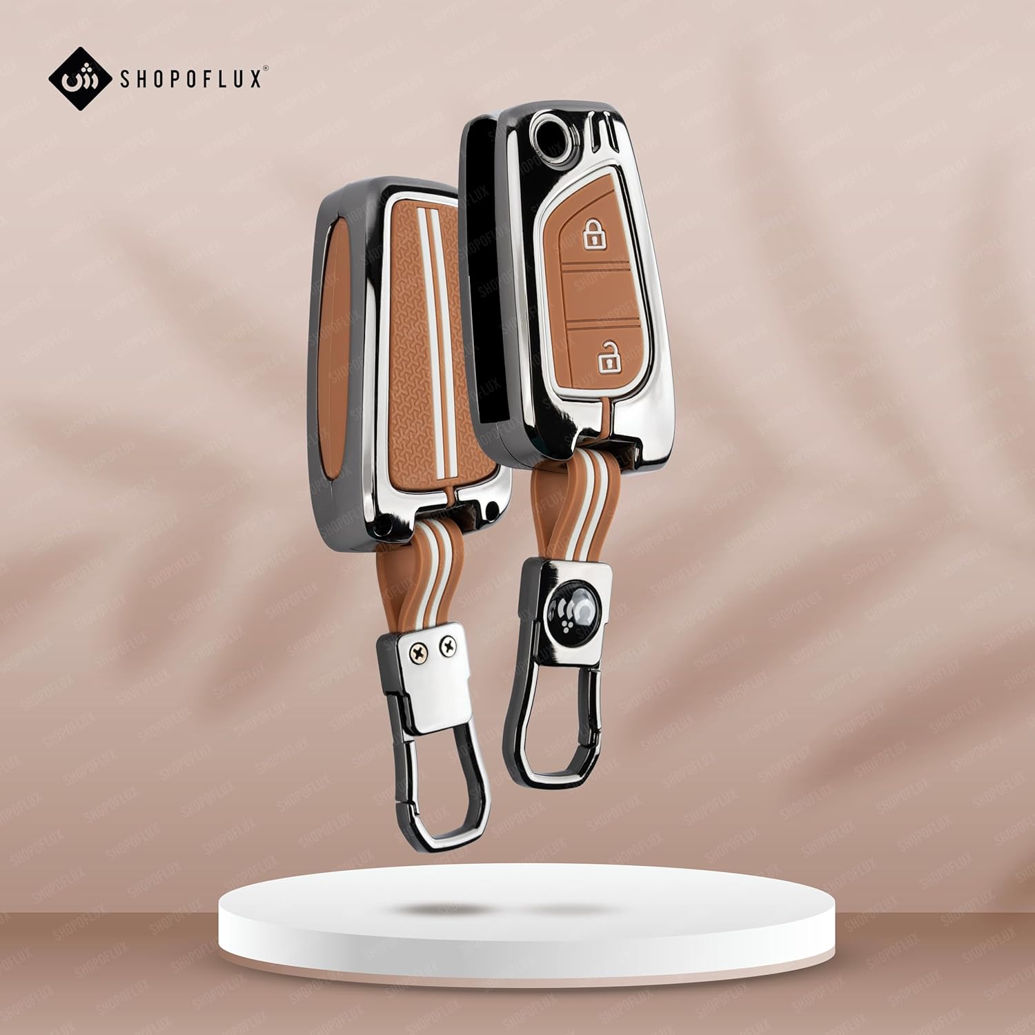 SHOPOFLUX Metal Key Cover Compatible with Toyota Innova Crysta | Corolla Altis 2 Button Flip Key (Metal Silicone Brown)